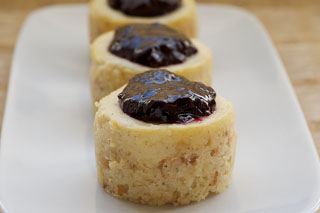 Last but certainly not least are those lovely Vanilla Bean Mini Cheesecakes with Blueberry Sauce. As if all that vanilla and fresh blueberry sauce weren’t enough, there’s toasted coconut in the crust. For a shortcut, use store-bought pie filling for the topping, or try heating blueberry preserves briefly in the microwave and dollop on top of these little cheesecakes.