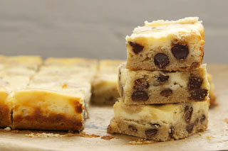 If you’re a bit intimidated by the prospect of making cheesecake, try making cheesecake bars. It’s the same concept but without a special pan. And, they usually bake more quickly, too. These Chocolate Chip Cookie Cheesecake Bars combine chocolate chip cookies and cheesecake into a sure crowd-pleaser.